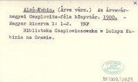 Alsó-Kubin. (Árva vármegye.) Az árvavármegyei Csaplovits-féle könyvtár. 1902