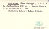 Alsó-Kubin. (Árva vármegye.) A F.M.K.E. népkönyvtára. 1904 a