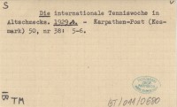 Die internationale Tenniswoche in Altschmecks. 1929 s