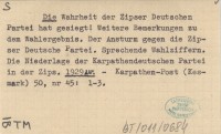 Die Wahrheit der Zipser Deutschen Partei hat gesiegt! Weitere gegen die Zipser Deutsche Partei. Sprechende Wahlziffern. Die Niederlage der Karpathendeutschen Partei in der Zips. 1929 w