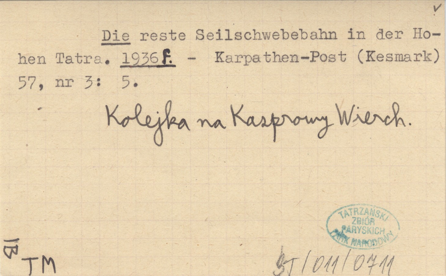 Karpathen-Post (Kesmark) , 57, nr 3: 5. Kolejka na Kasprowy Wierch.
