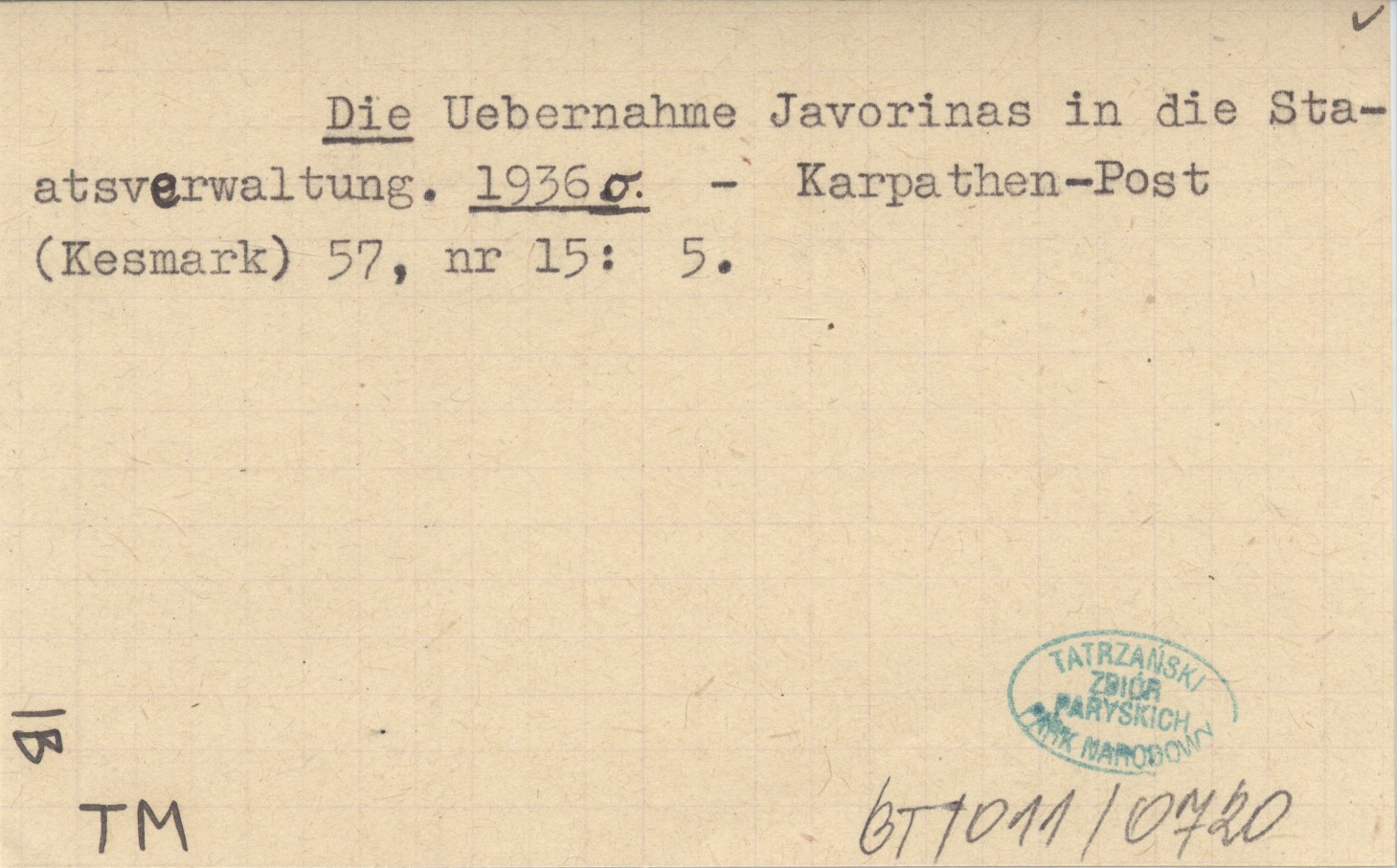 Die Uebernahme Javorinas in die Statsverwaltung. 1936 o