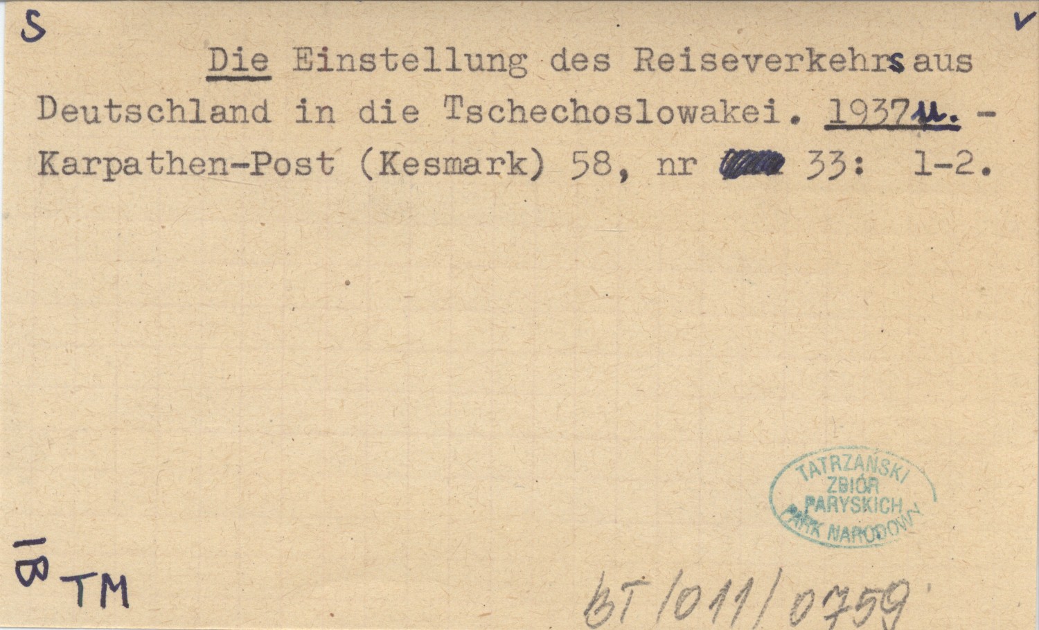 Die Einstellung des Reiseverkehrsaus Deutschland in die Tschechoslowakei. 1937 u