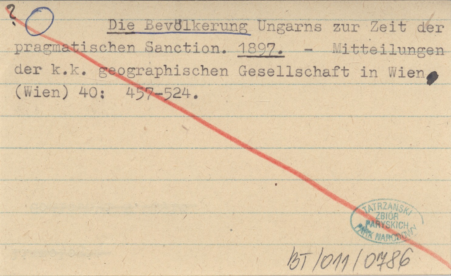 Die Bevölkerung Ungarns zur Zeit der pragmatischen Sanction. 1897