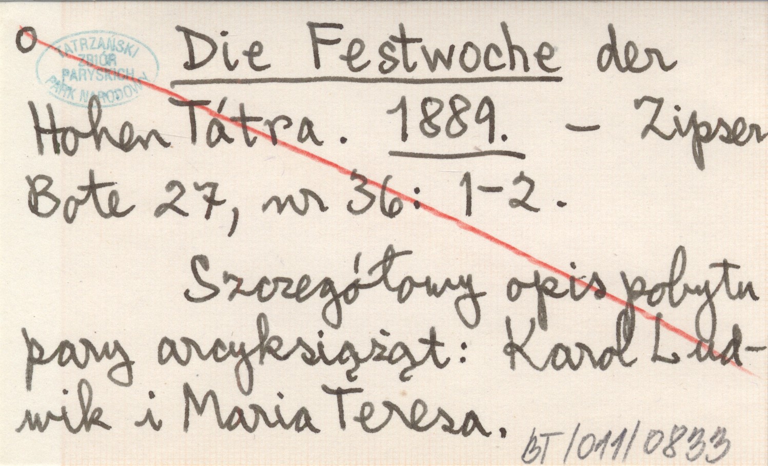 Projekt Digitalizacja fiszek z Bibliografią Tatr i Podtatrza Witolda Henryka Paryskiego jest finansowany ze środków Ministra Kultury i Dziedzictwa Narodowego oraz Tatrzańskiego Parku Narodowego.