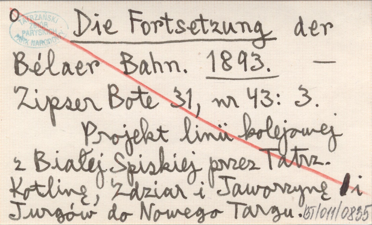 Zipser Bote, 31, nr 43: 3. Projekt linii kolejowej z Białej Spiskiej przez Tatrzańską Kotlinę, Zdziar i Jaworzynę i Jurgów do Nowego Targu.