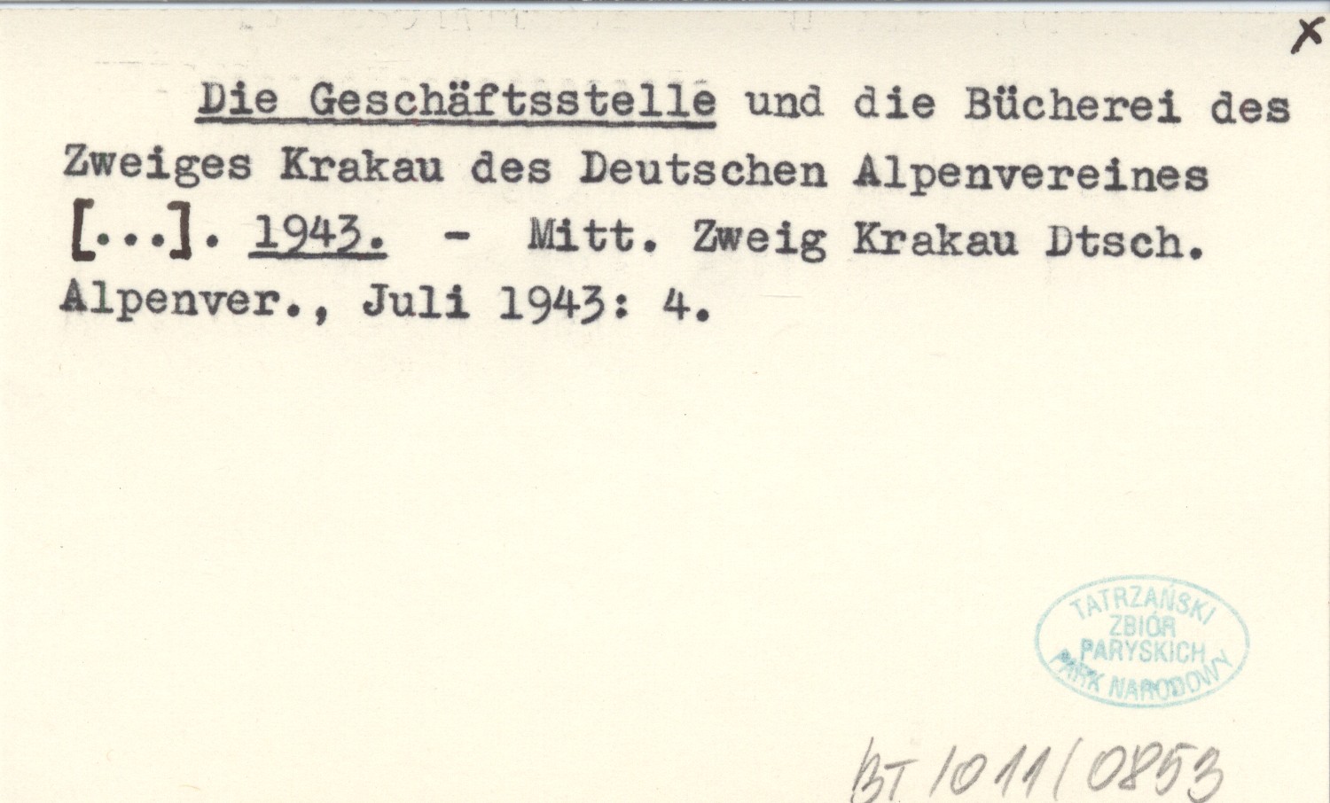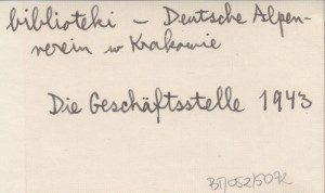 Die Geschäftsstelle und die Bücherei des Zweiges Krakau des Deutschen Alpenvereines. 1943