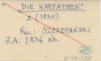 RED: ZUBER, Oskar (1934-1938). ; i in. ; "Die Karpathen". 1934-1943