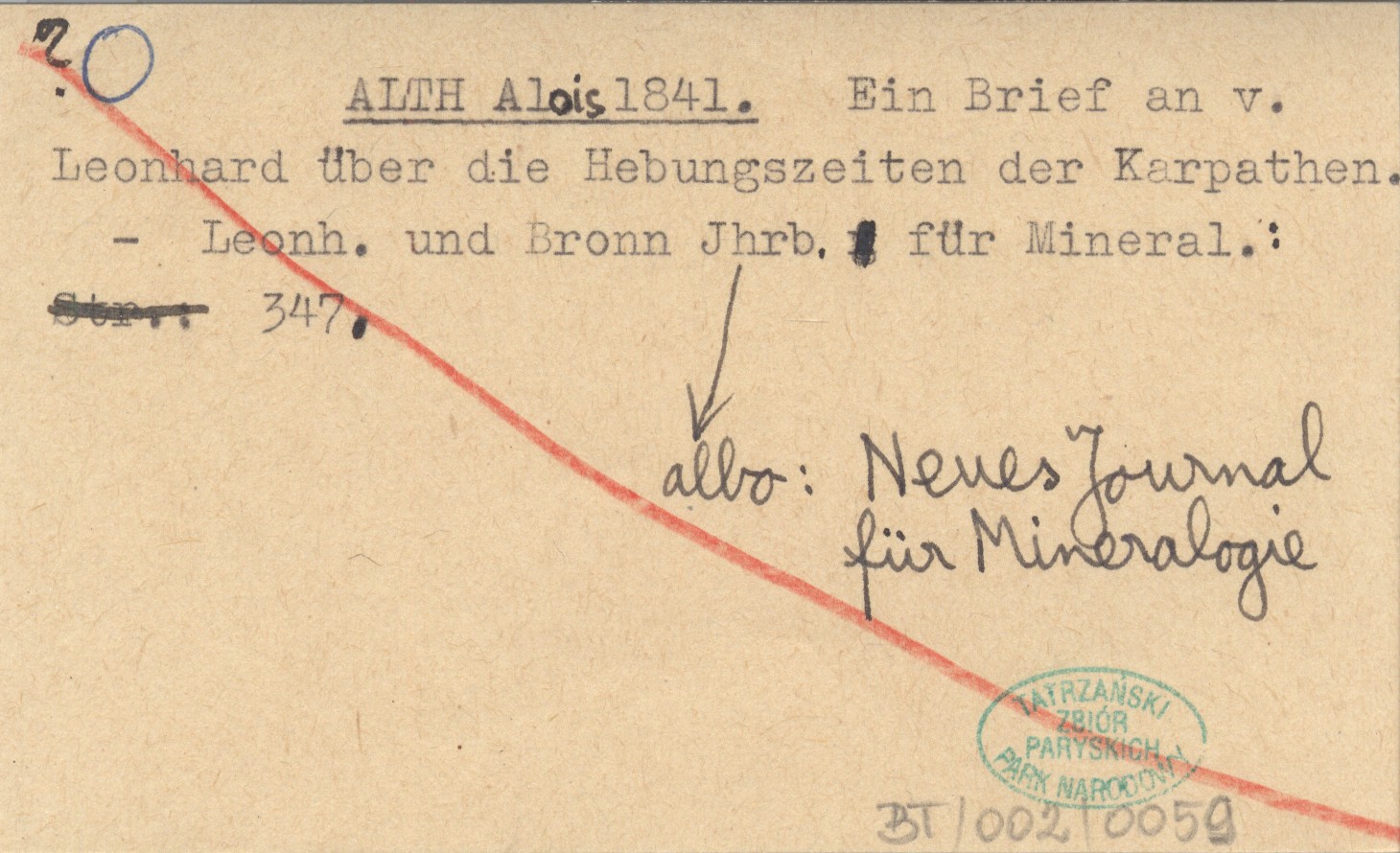 ALTH Alois 1841 Ein Brief an v. Leonhard über die Hebungszeiten der Karpathen.