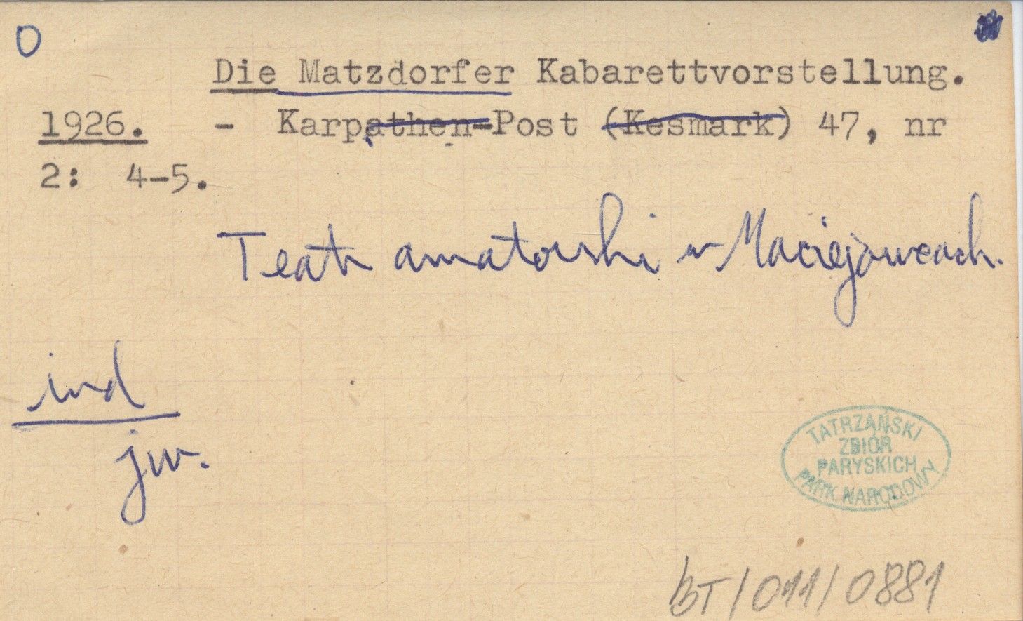 Projekt Digitalizacja fiszek z Bibliografią Tatr i Podtatrza Witolda Henryka Paryskiego jest finansowany ze środków Ministra Kultury i Dziedzictwa Narodowego oraz Tatrzańskiego Parku Narodowego.