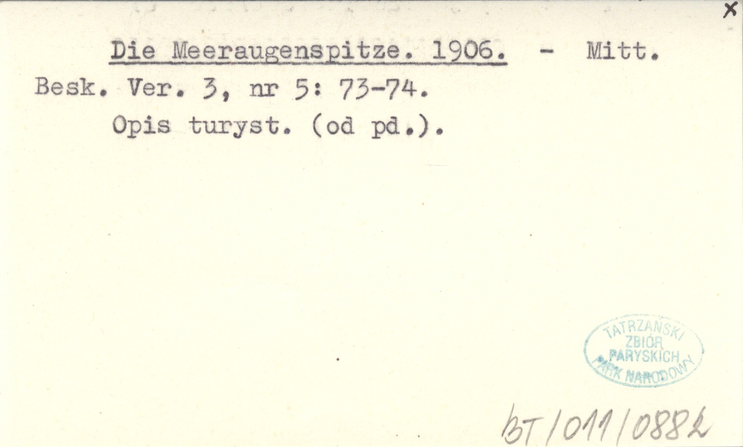 Mitt. Besk. Ver., 3, nr 5: 73-74. Opis turystyczny (od południa).