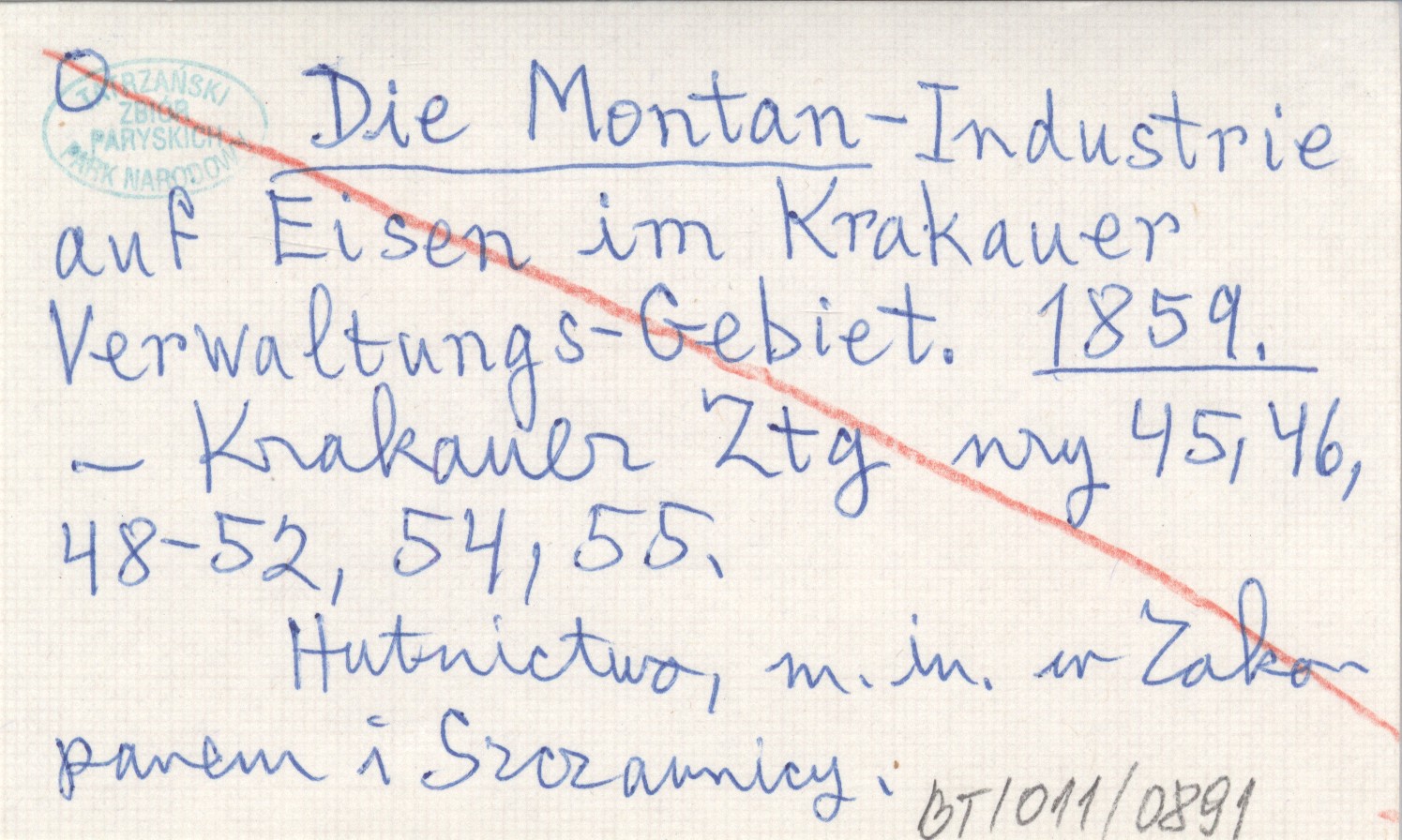 Die Montan -Industrie auf Eisen im Krakauer Verwaltungs-Gebiet. 1859