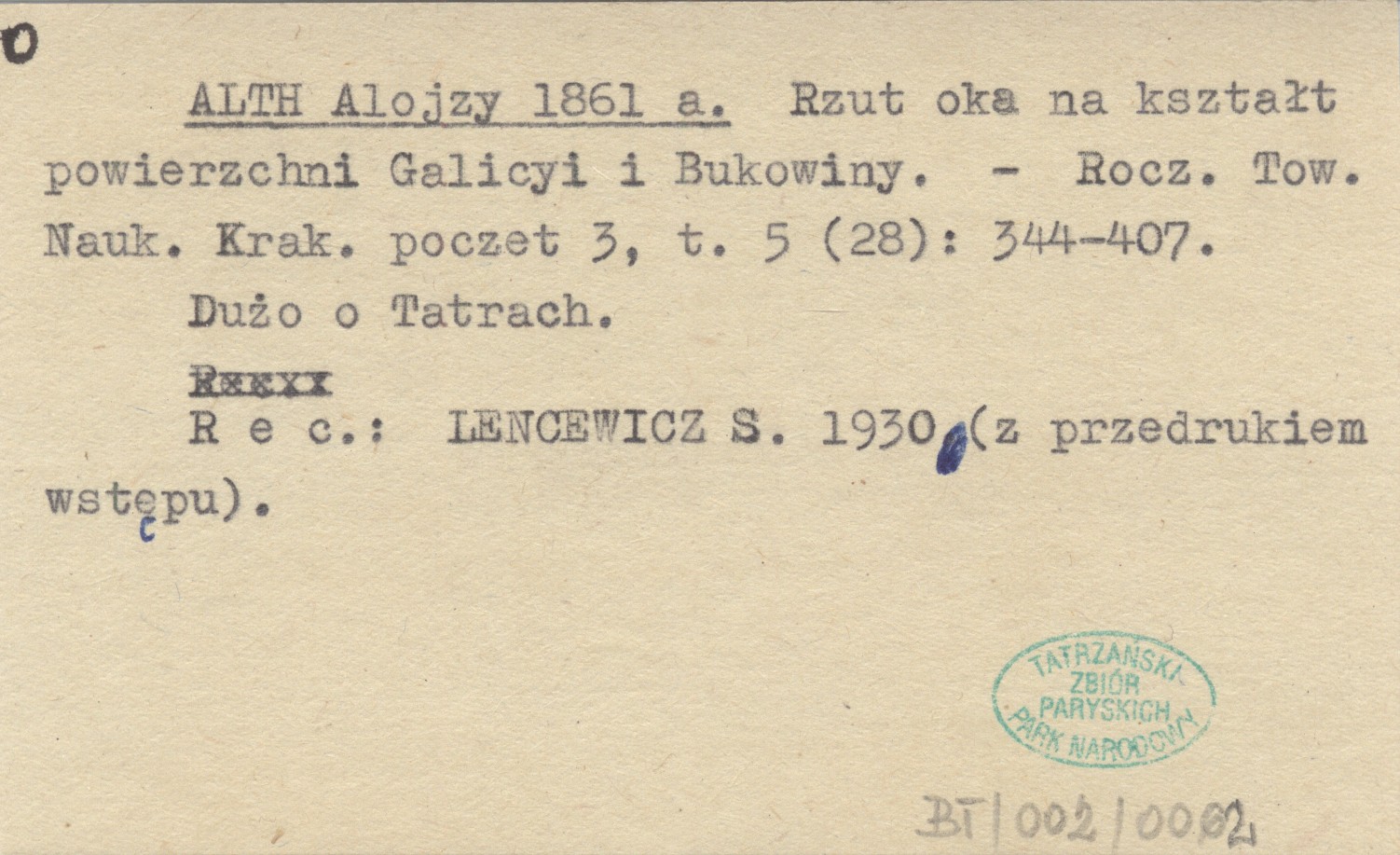 Rocznik Towarzystwa Naukowego Krakowskiego, Poczet 3, t. 5 (28): 344-407. Dużo o Tatrach. REC: LENCEWICZ S. 1930 (z przedrukiem wstępu).