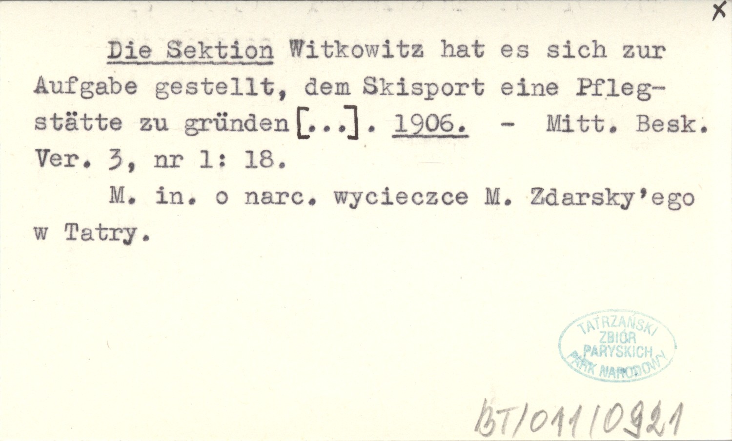 Mitt. Besk. Ver., 3, nr 1: 18. M. in. o narciarskiej wycieczce M. Zdarsky'ego w Tatry.