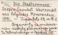 Die Stadtcommune- Szepes-Szombat übersendet uns folgendes Memorandum. 1891