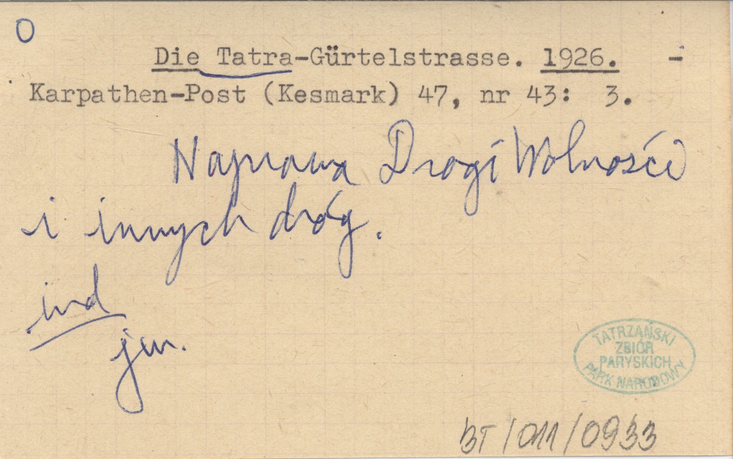 Projekt Digitalizacja fiszek z Bibliografią Tatr i Podtatrza Witolda Henryka Paryskiego jest finansowany ze środków Ministra Kultury i Dziedzictwa Narodowego oraz Tatrzańskiego Parku Narodowego.