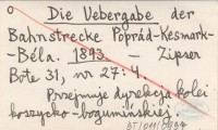 Die Uebergabe der Bahnstrecke Poprád-Kesmark-Béla. 1893