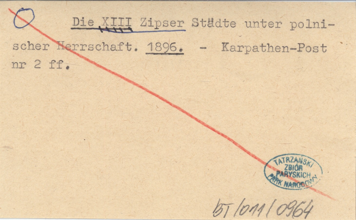 Die XIII Zipser Städte unter polnischer Herrschaft. 1896