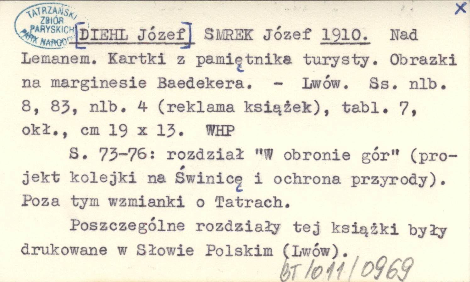 SMREK Józef [DIEHL Józef] 1910 Nad Lemanem. Kartki z pamiętnika turysty. Obrazki na marginesie Baedekera.