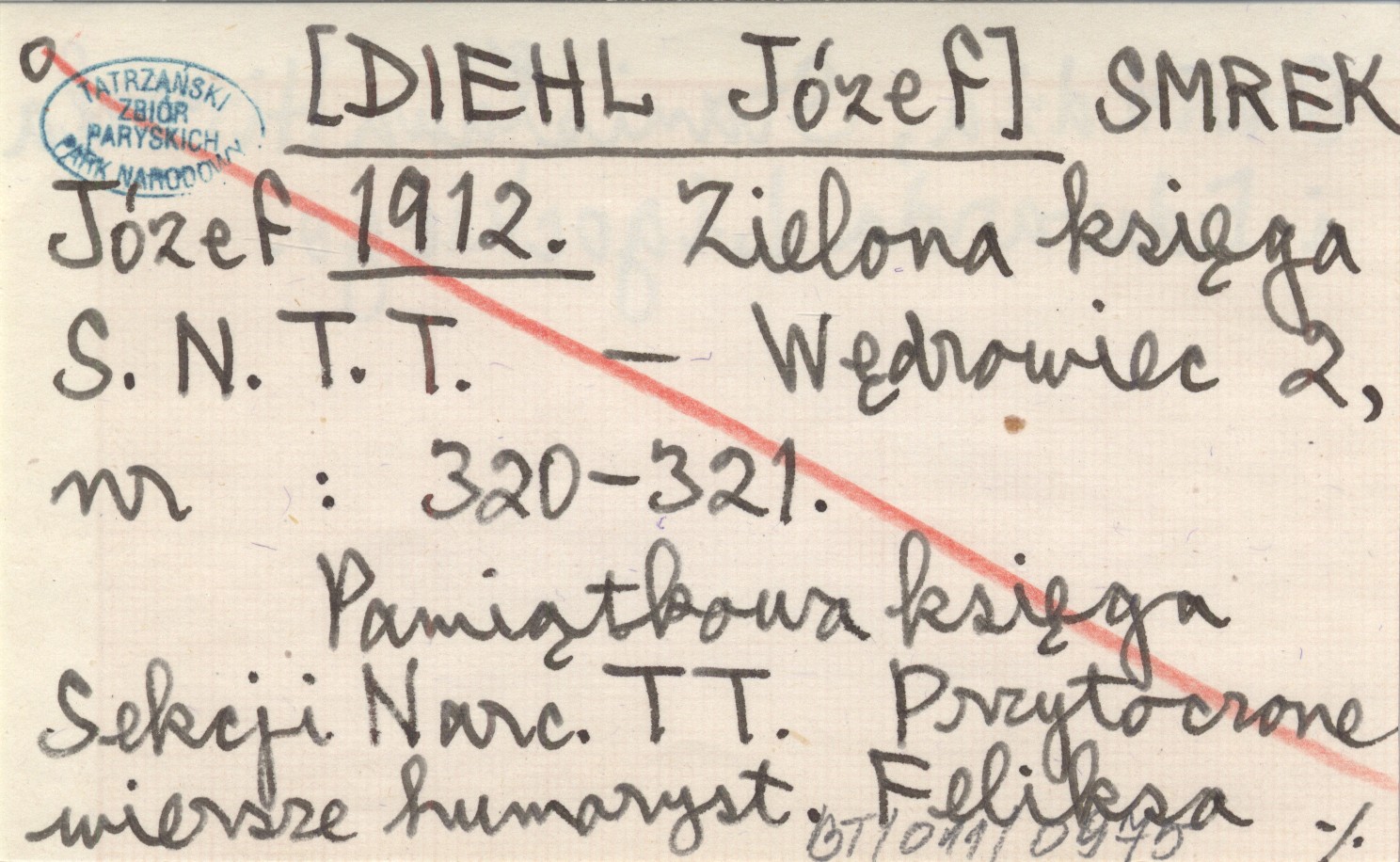 Wędrowiec, 2, S. 320-321. Pamiątkowa księga Sekcji Narciarskiej TT. Przytoczone wiersze humorystyczne Feliksa Gwiżdża, Stanisława Hirszla i Edwarda Ligockiego.