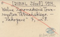 [DIEHL Józef] 1914 Walne Zgromadzenie Towarzystwa Tatrzańskiego.