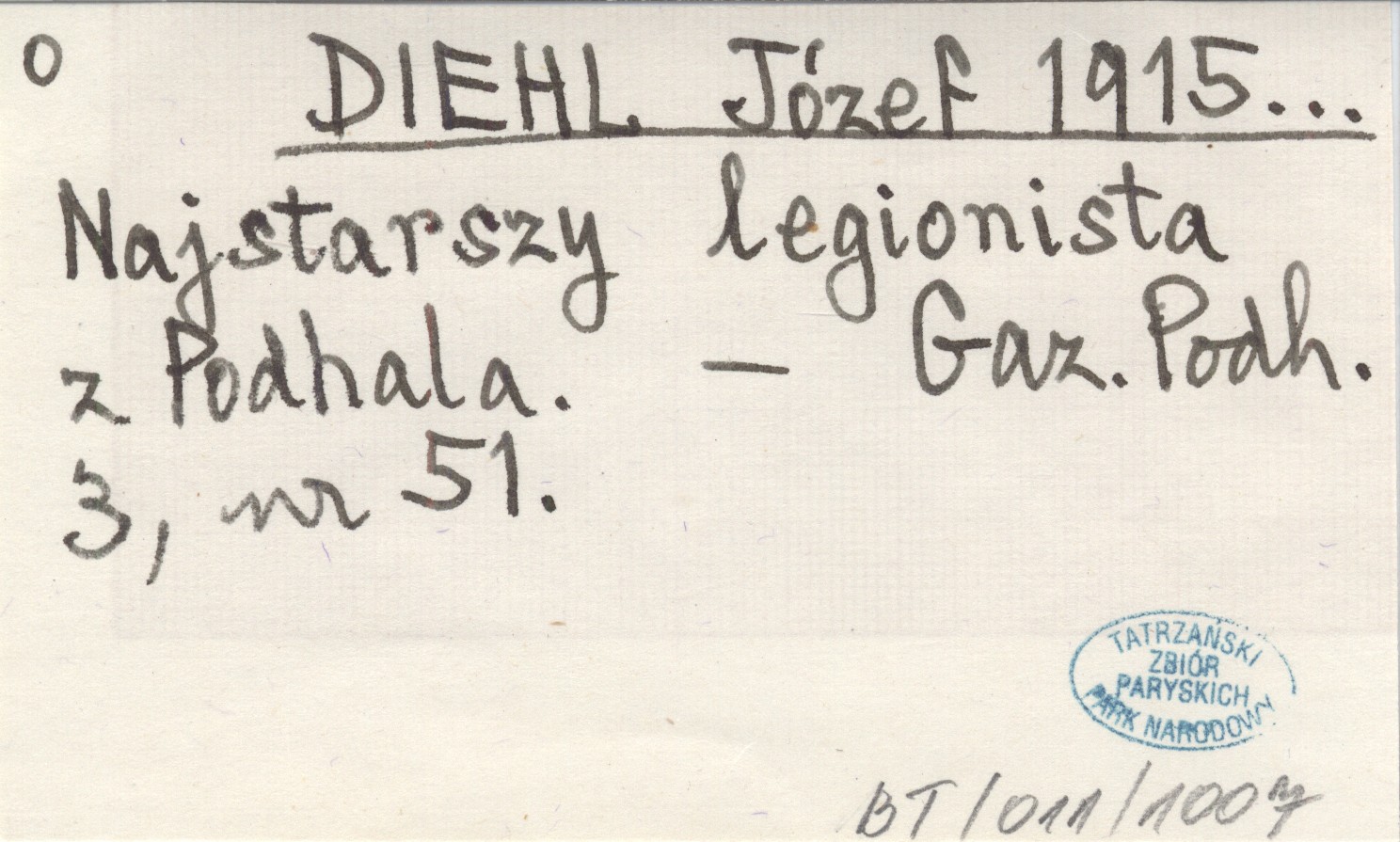 DIEHL Józef 1915... Najstarszy legionista z Podhala.