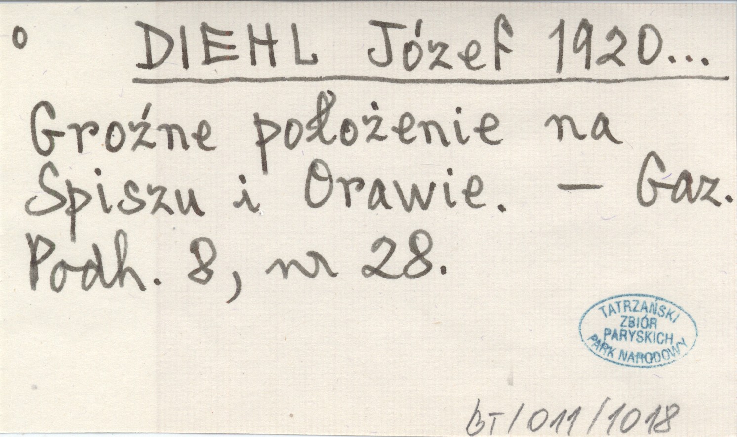DIEHL Józef 1920... Groźne położenie na Spiszu i Orawie.