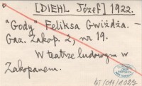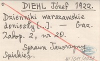 DIEHL Józef 1922 Dzienniki warszawskie doniosły [...].