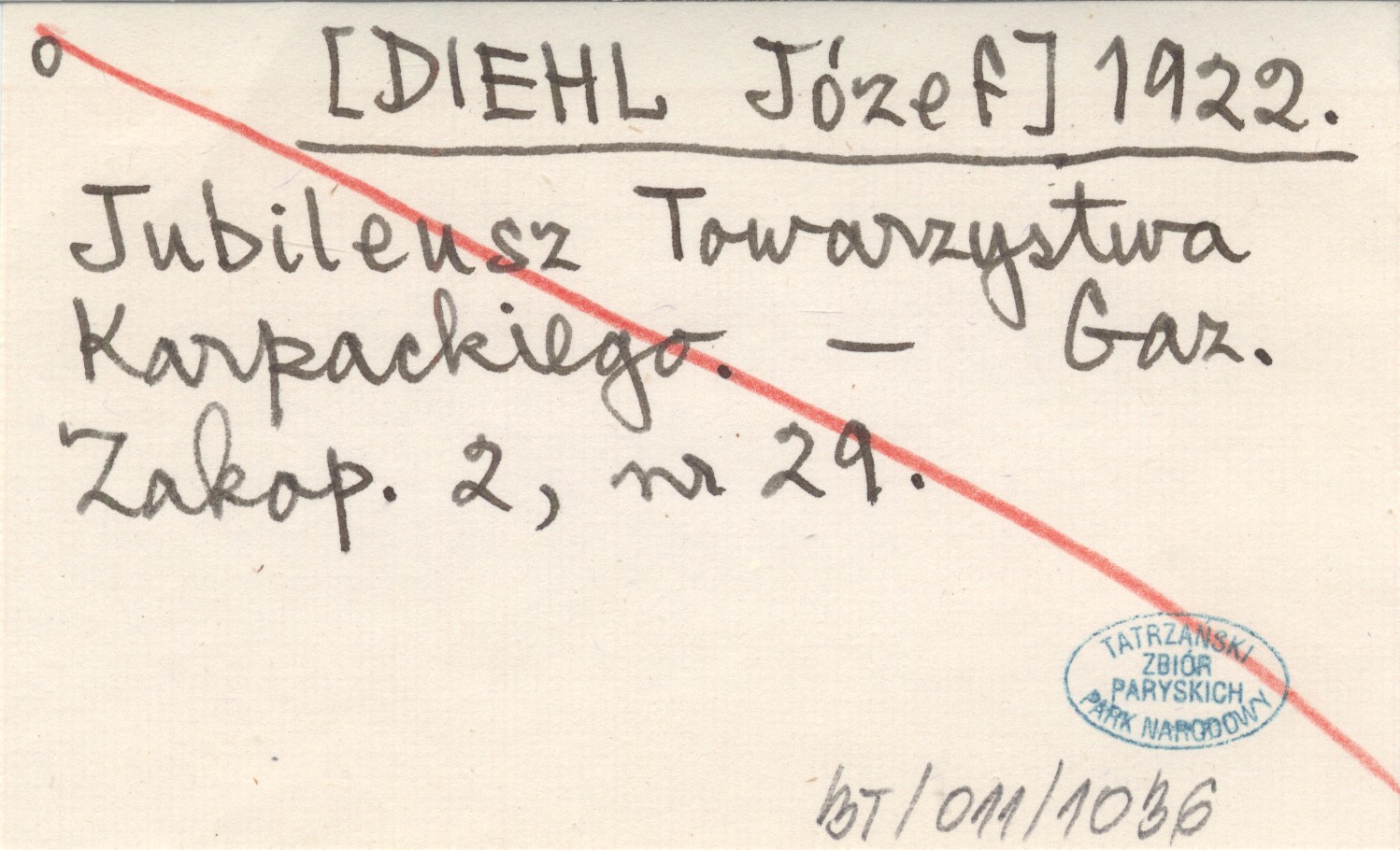 [DIEHL Józef] 1922 Jubileusz Towarzystwa Karpackiego.