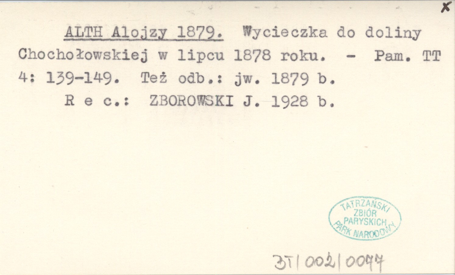 Pamiętnik Towarzystwa Tatrzańskiego, 4: 139-149. Też odb.: jw. 1879 b REC: ZBOROWSKI J. 1928 b