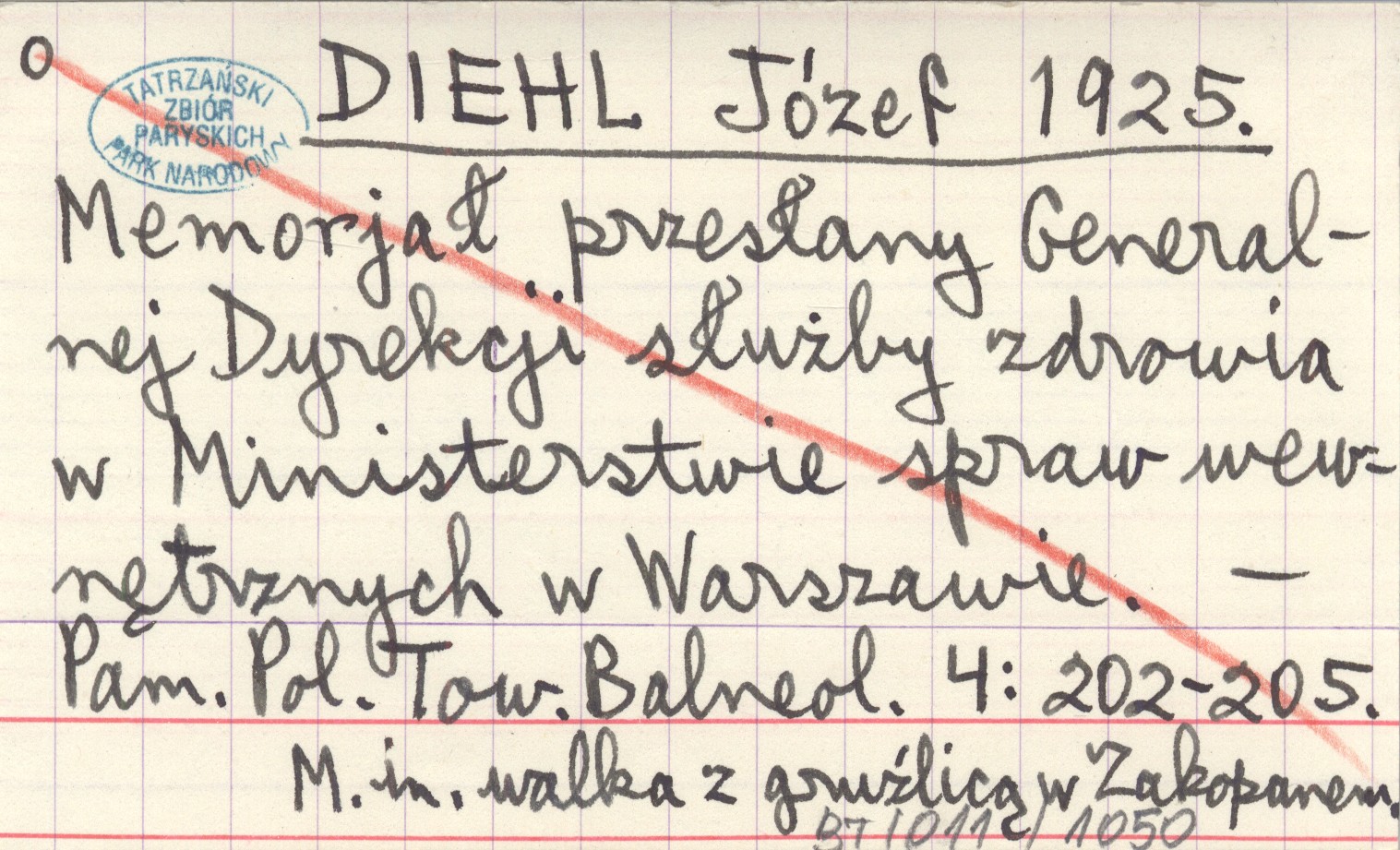 Pamiętnik Polskiego Towarzystwa Balneologii, 4: 202-205. M. in. walka z gruźlicą w Zakopanem.
