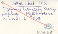 [DIEHL Józef] 1923 [Spór o Jaworzynę Spiską].