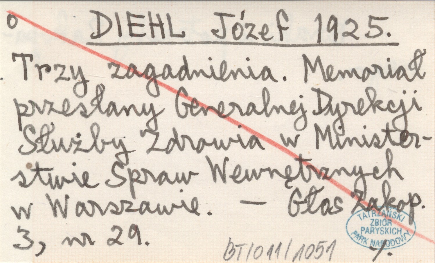 DIEHL Józef 1925 Trzy zagadnienia. Memoriał przesłany Generalnej Dyrekcji Służby Zdrowia w Ministerstwie Spraw Wewnętrznych w Warszawie.