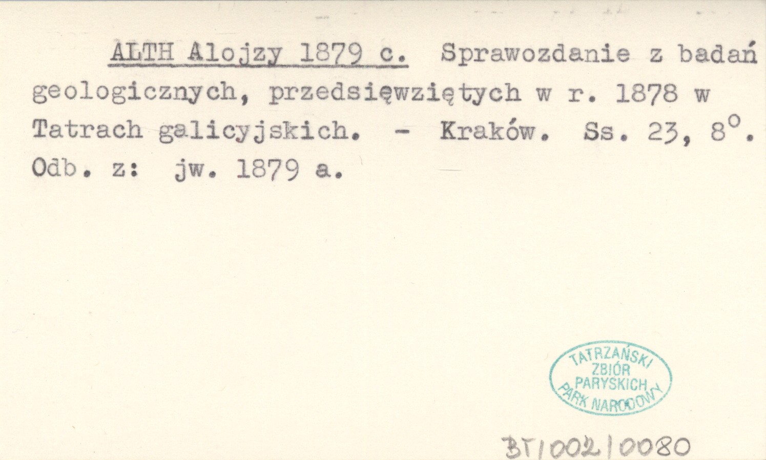 ALTH Alojzy 1879 c Sprawozdanie z badań geologicznych, przedsięwziętych w r. 1878 w Tatrach galicyjskich.