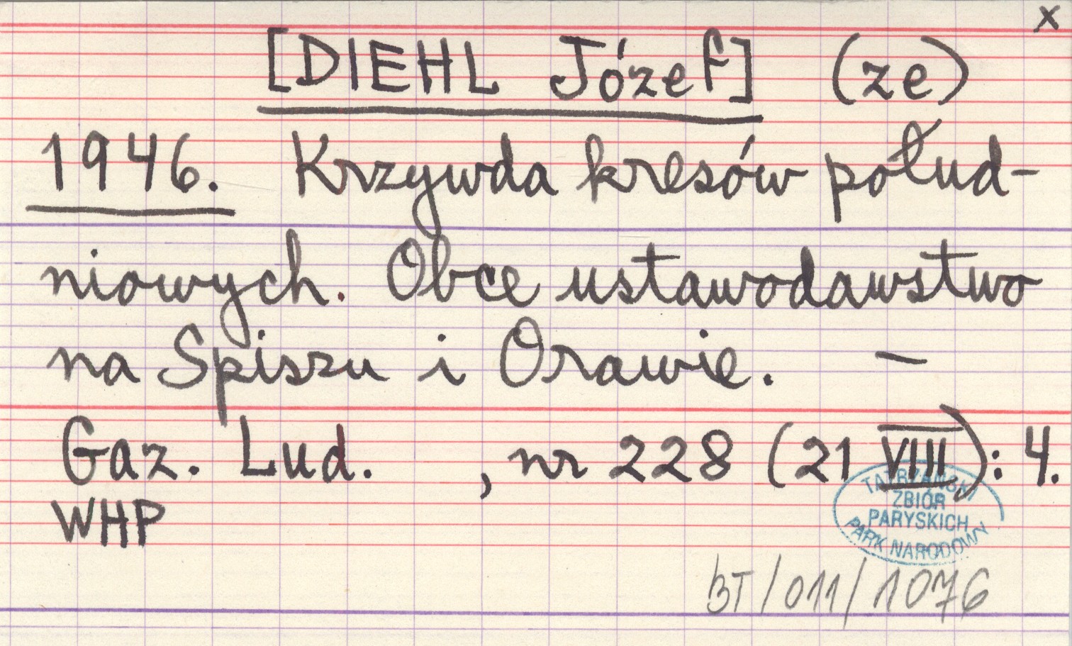 (ze) [DIEHL Józef] 1946 Krzywda kresów południowych. Obce ustawodawstwo na Spiszu u Orawie.