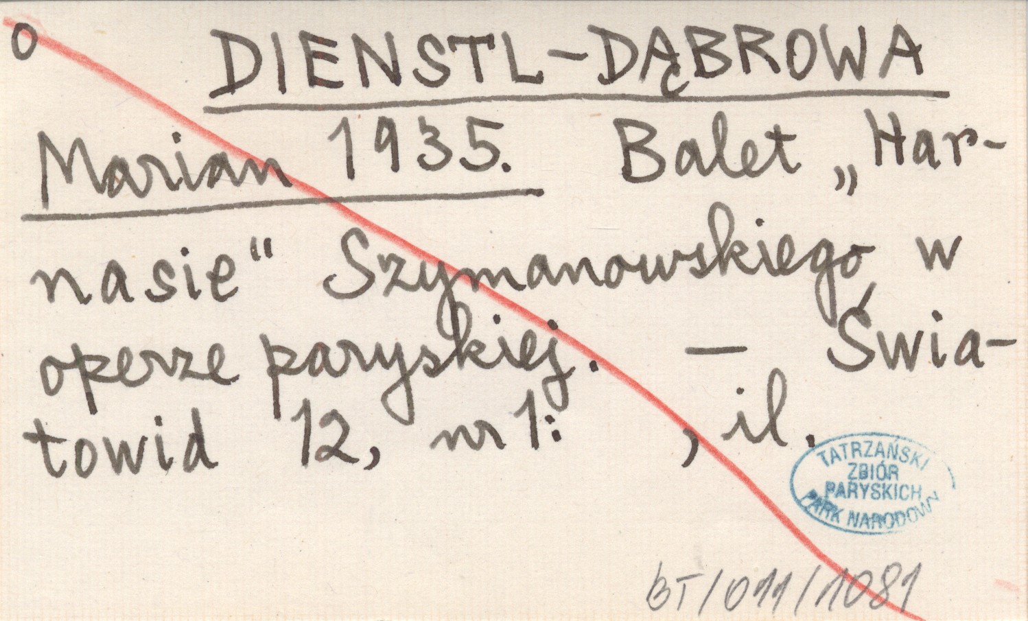 DIENSTL-DĄBROWA Marian 1935 Balet "Harnasie" Szymanowskiego w operze paryskiej.