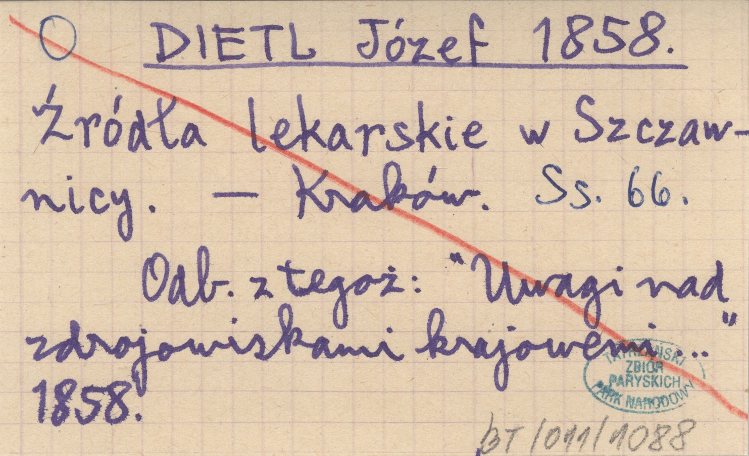 Kraków , 66 s. Odb. z tegoż: "Uwagi nad zdrojowiskami krajowemi ..." 1858.