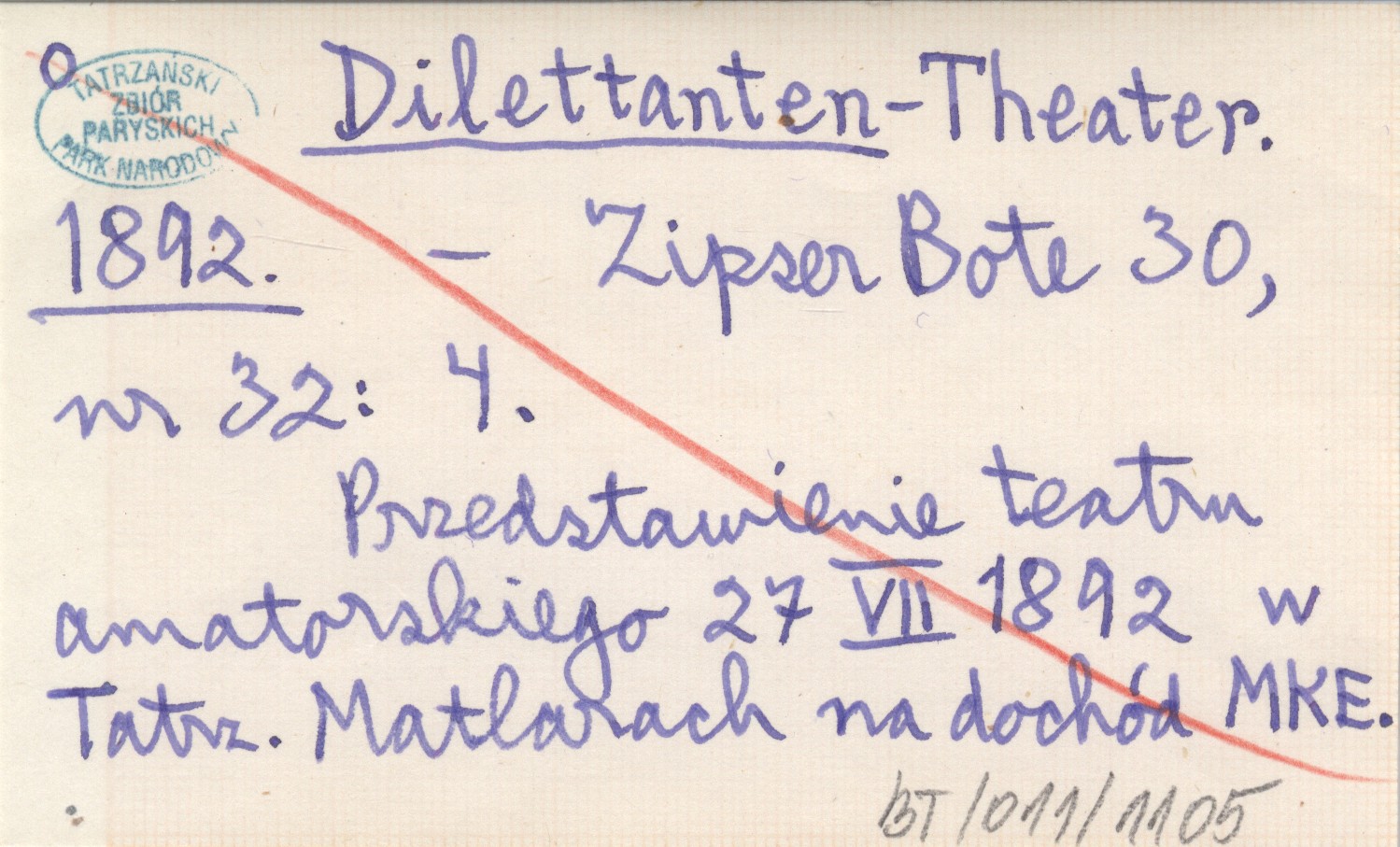 Zipser Bote, 30, nr 32: 4. Przedstawienie teatru amatorskiego 27 VII 1892 w Tatrz. Matlarach na dochód MKE.