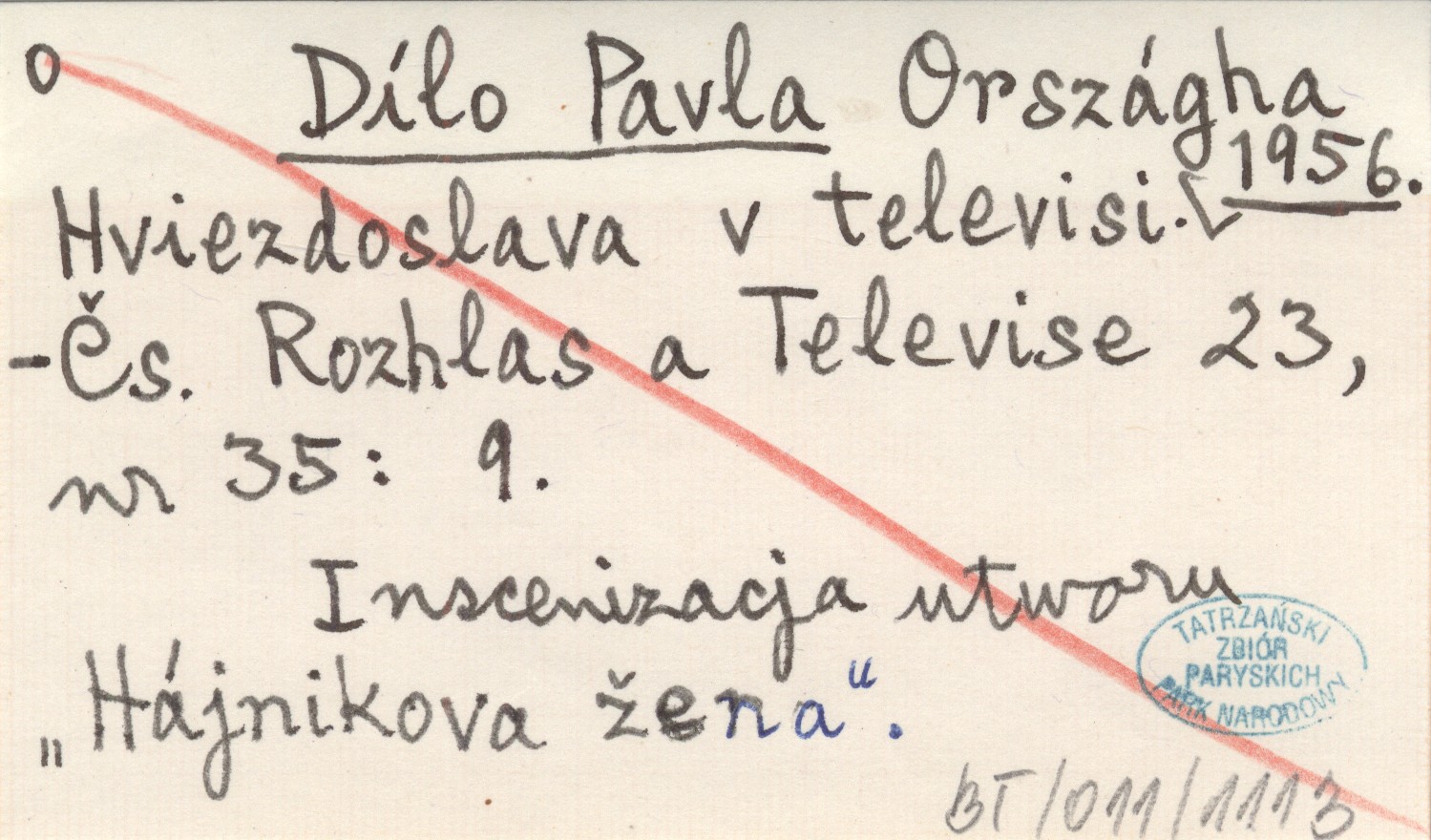 Čs. Rozhlas a Televise, 23, nr 35: 9. Inscenizacja utworu "Hájnikova žena".