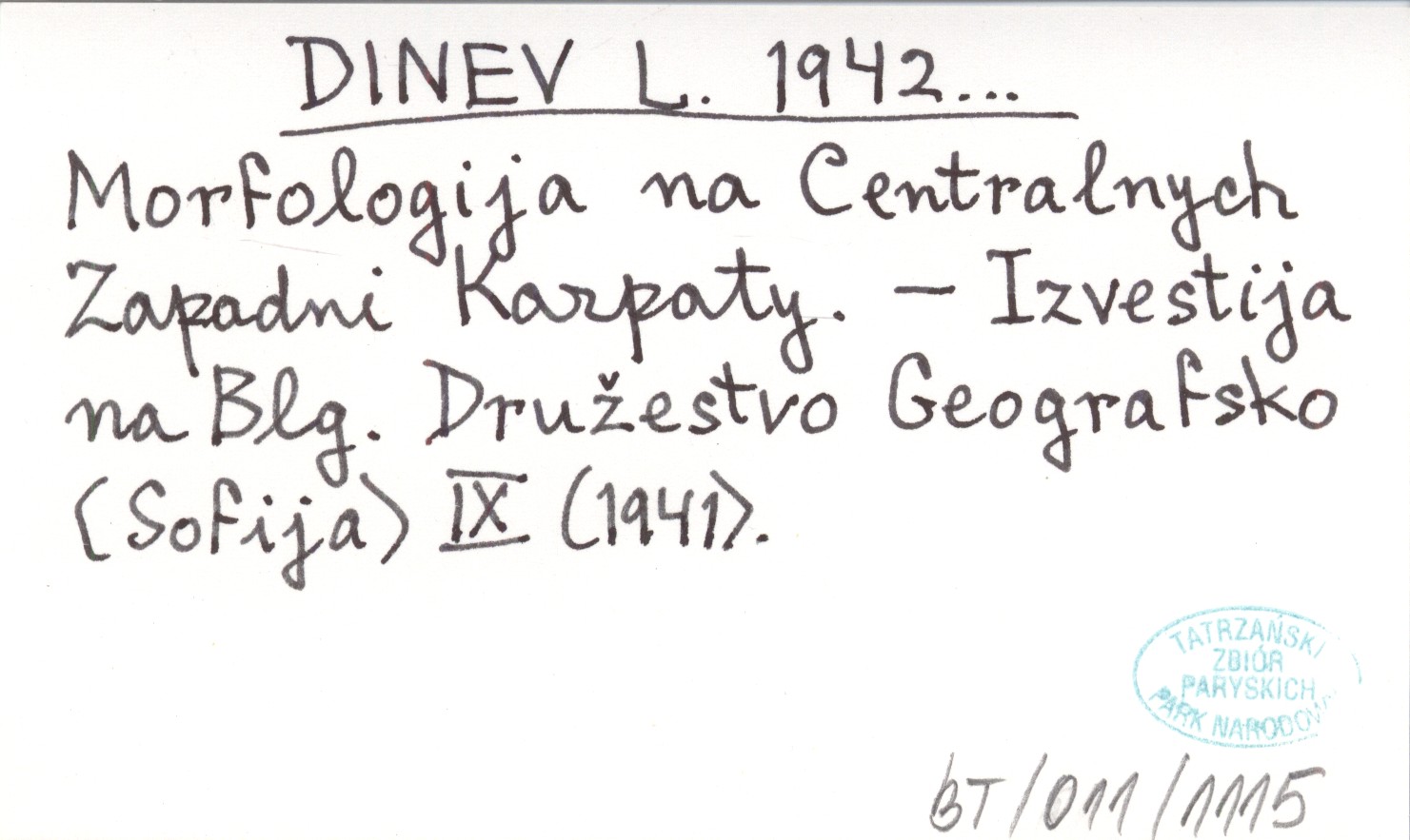 DINEV L. 1942... Morfologija na Centralnych Zapadni Karpaty.