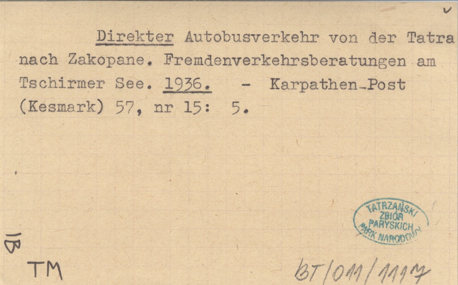 Direkter Autobusverkehr von der Tatra nach Zakopane. Fremdenverkehrsberatungen am Tschirmer See. 1936
