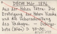 DÉCHY Mór 1876 Aus der Hohen Tátra: Die Ersteigung der Hohen Viszoka und die Ueberschreitung des Vaskapu.