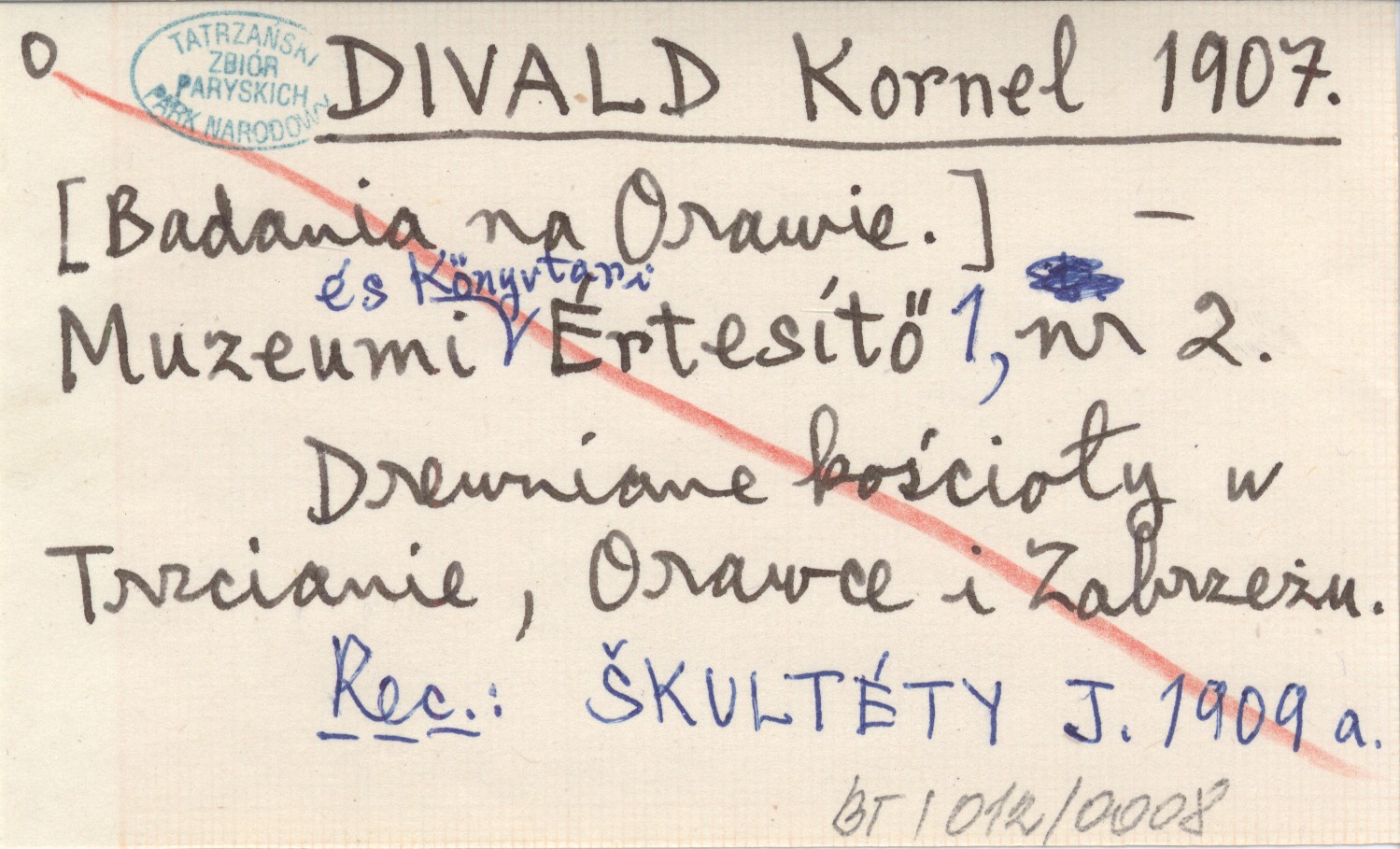 Muzeumi és Kőnyvtári Ertesítő, 1, nr 2. Drewniane kościoły w Trzcianie, Orawce i Zabrzeżu. REC: ŠKULTÉTY J. 1909 a.