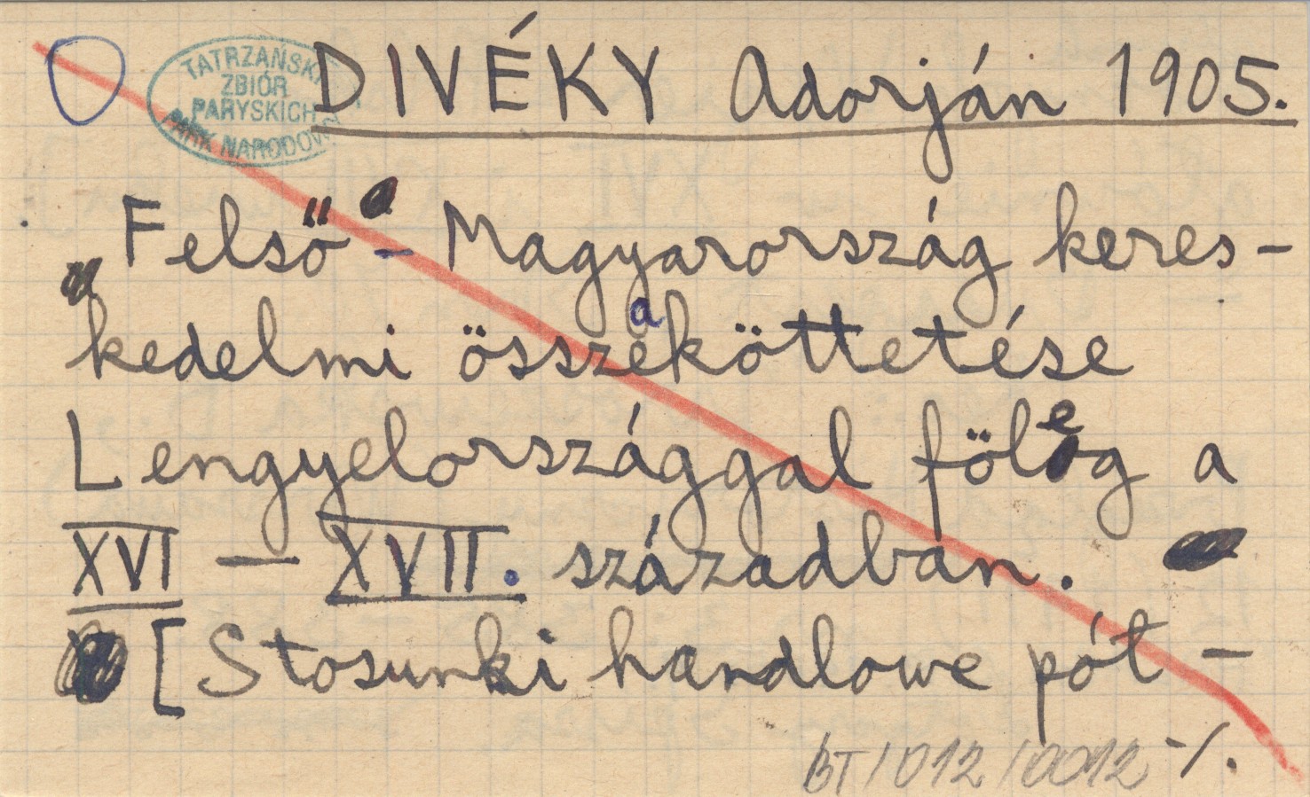 DIVÉKY Adorján 1905 Felső-Magyaroszág kereskedelmi összeköttetése Lengyelországgal föleg a XVI-XVII. században. [Stosunki handlowe górnych północnych Węgier z Polską, głównie w XVI i XVII wieku].