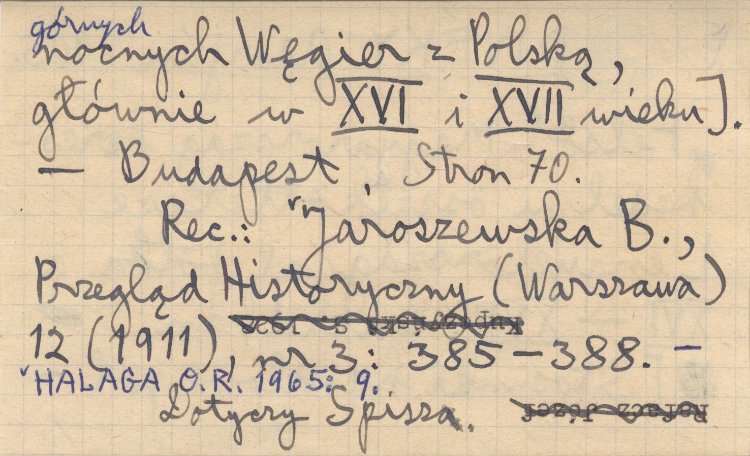 Budapest , 70 s. Dotyczy Spisza. REC: Jaroszewska B., Przegląd Historyczny (Warszawa) 12 (1911), nr 3: 385-388. HALAGA O.R. 1965: 9.
