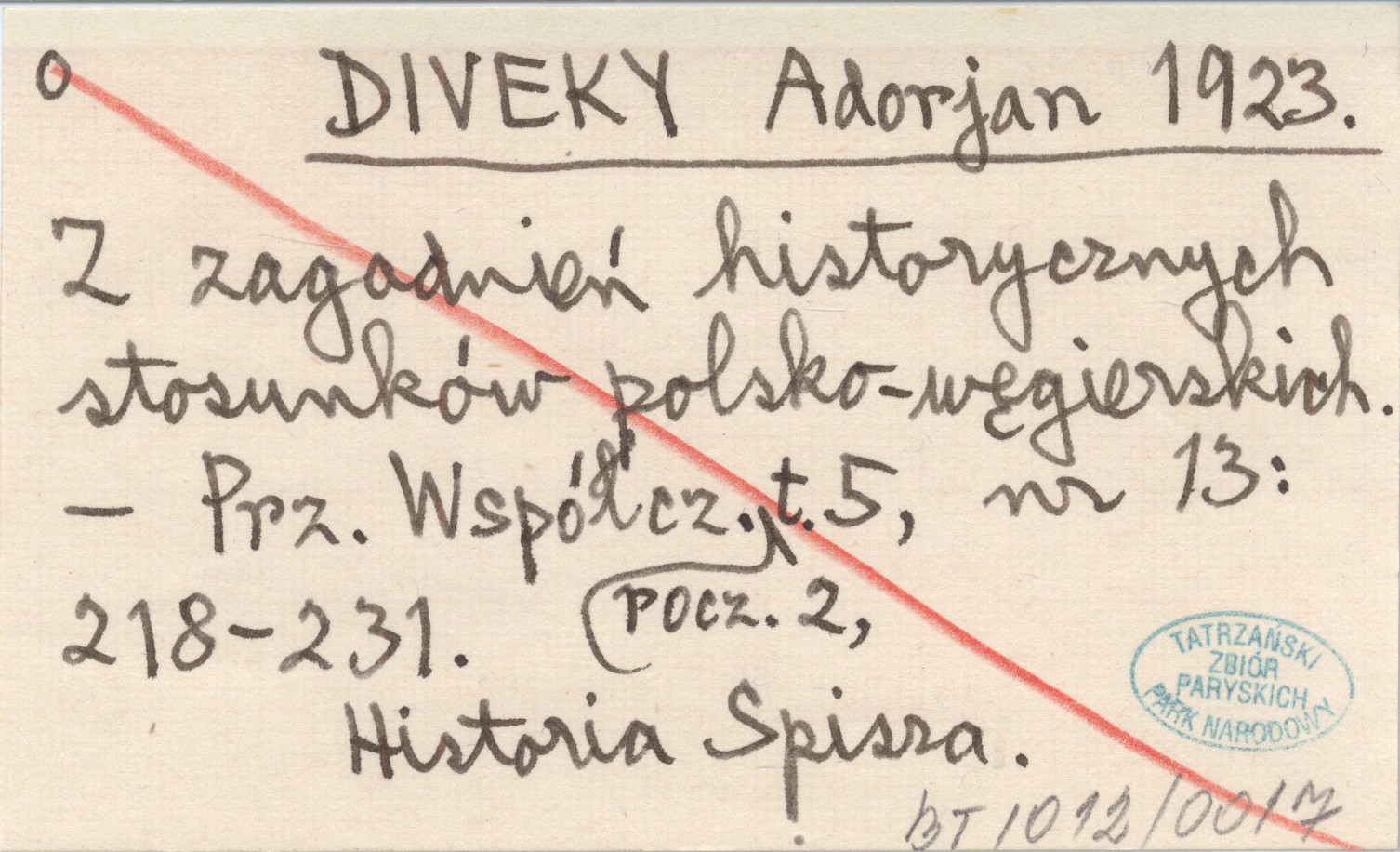 DIVEKY Adorjan 1923 Z zagadnień historycznych stosunków polsko-węgierskich.