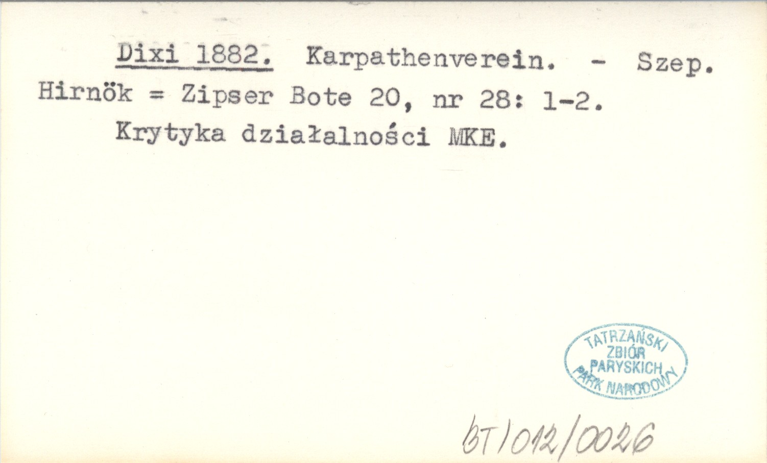 Projekt Digitalizacja fiszek z Bibliografią Tatr i Podtatrza Witolda Henryka Paryskiego jest finansowany ze środków Ministra Kultury i Dziedzictwa Narodowego oraz Tatrzańskiego Parku Narodowego.