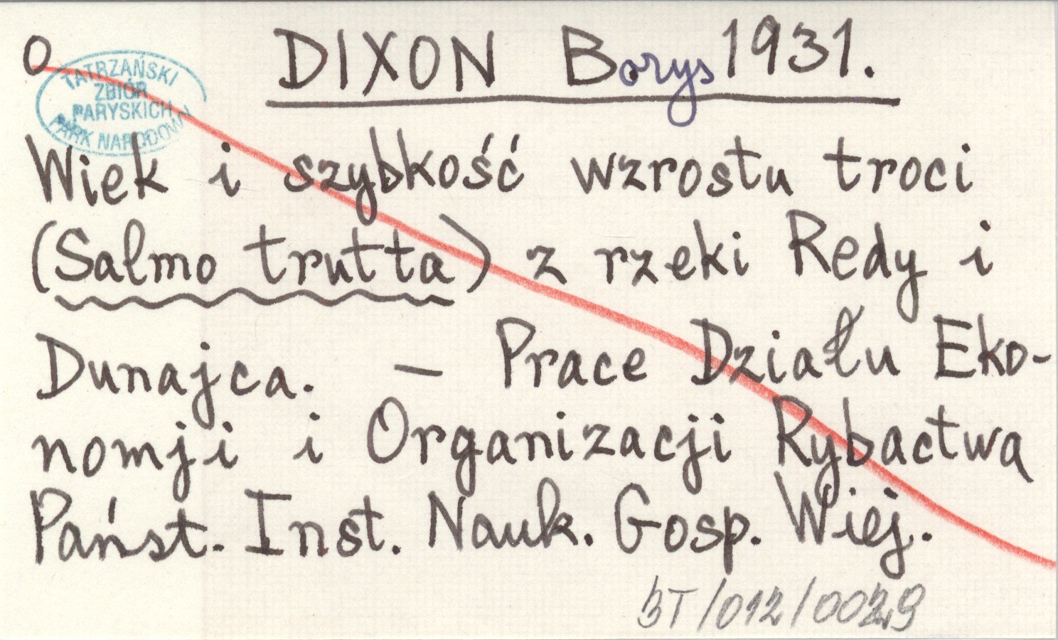DIXON Borys 1931 Wiek i szybkość wzrostu troci (Salmo trutta) z rzeki Redy i Dunajca.