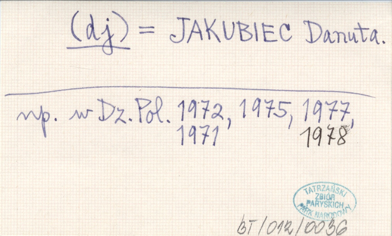 (dj) JAKUBIEC Danuta Dziennik Polski 1971, 1972, 1975, 1977, 1978.