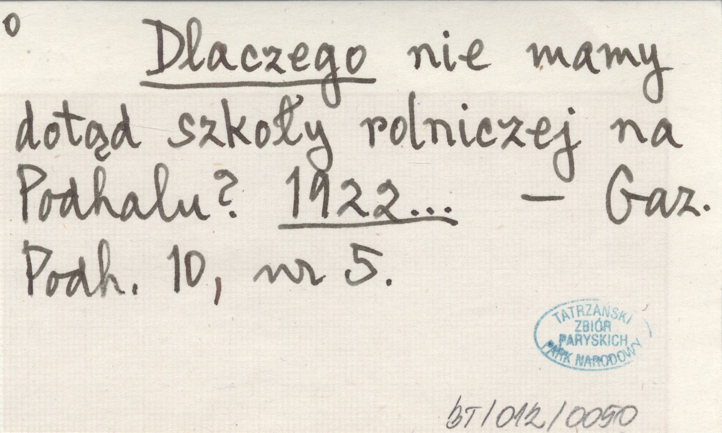 Dlaczego nie mamy dotąd szkoły rolniczej na Podhalu? 1922...